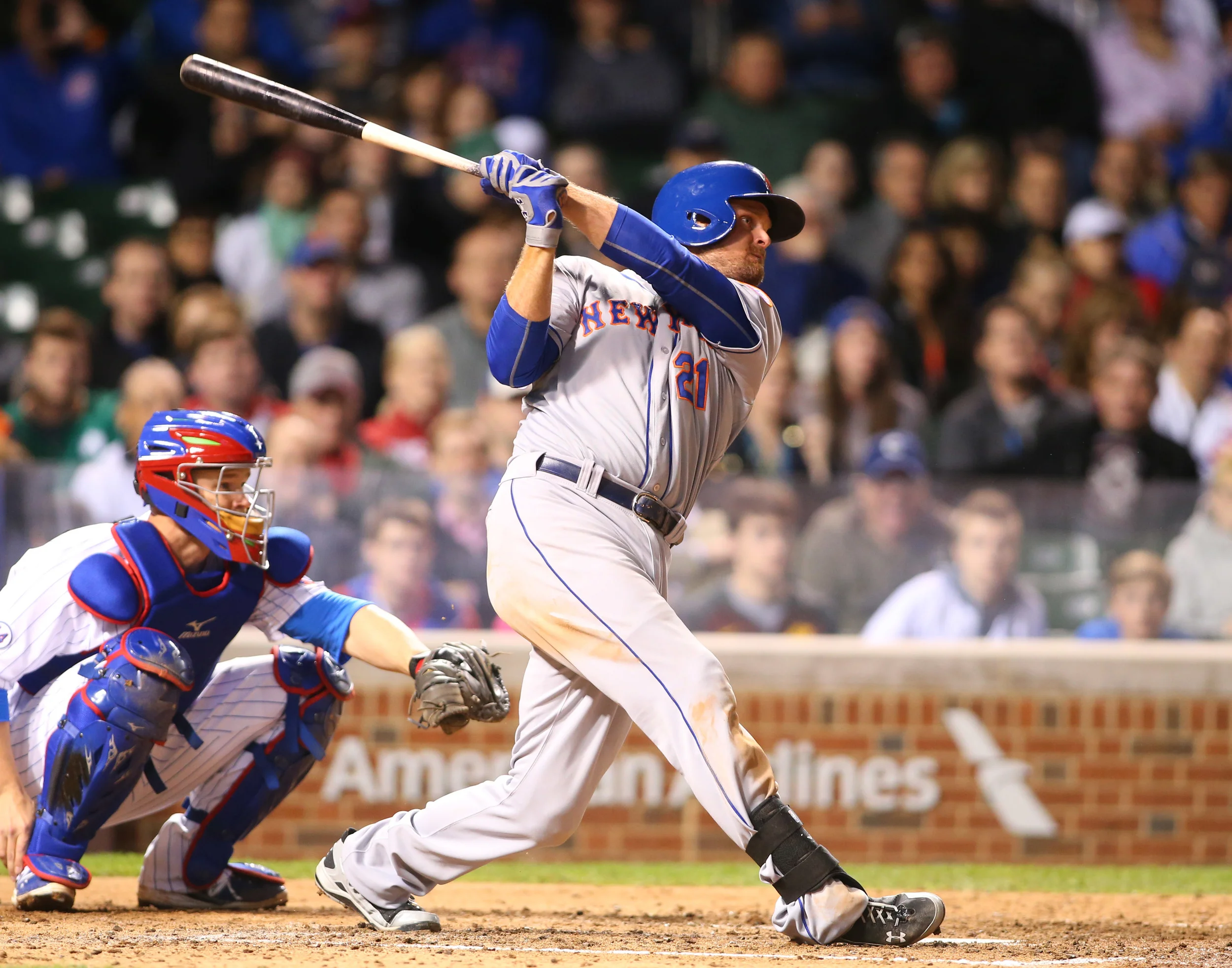 New York Mets first baseman Lucas Duda hits a home run during the sixth inning against the Chicago Cubs at Wrigley Field. Powerful hitting and the ability to clear the fences is a skill that is required in both baseball and T20 cricket. Image supplied by Action Images/ Caylor Arnold-USA TODAY Sports